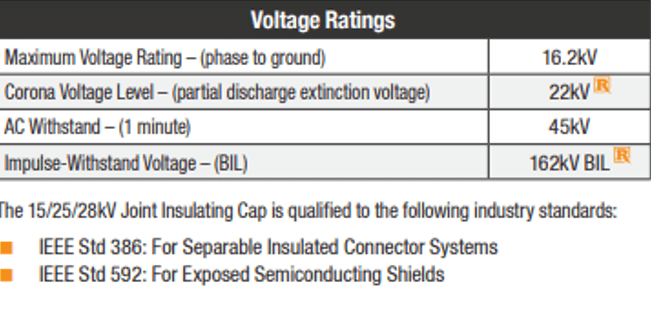 Richards 15/25/28kV Insulating Cap (P625JIC) provides a means for shielding, sealing and insulating 600A Disconnectable Joint Bus interfaces that are not in use.