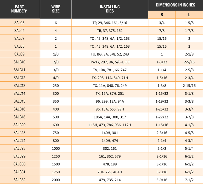 • Marked with conductor size and die information